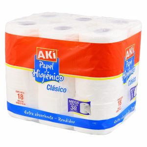 Papel Higiénico Clásico 2 En 1 AKÍ 18 Rollos