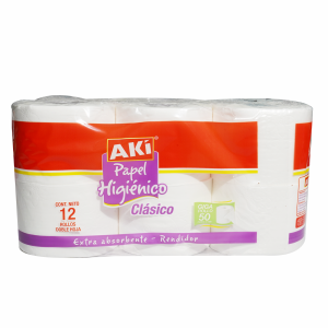 Papel Higiénico Clásico 3 En 1 AKÍ 12 Rollos