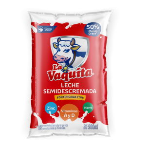 Leche Semidescremada Fortificada LA VAQUITA 900 Ml