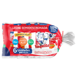 Leche Semidescremada Fortificada LA VAQUITA 6X900 ...