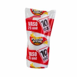 Vaso Blanco 10 Onzas PLASTIUTIL 25 Unidades
