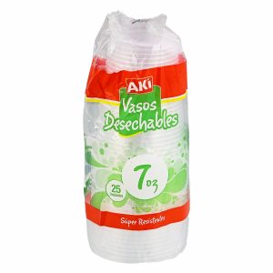Vaso Blanco De 7 Onzas AKÍ X 25 Uds