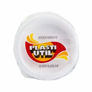 Plato Hondo Blanco/Amarillo PLASTIUTIL 25 Unidades