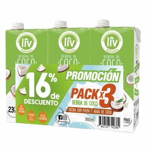 Bebida De Coco Sin Azúcar LIV 3 X 980 ml