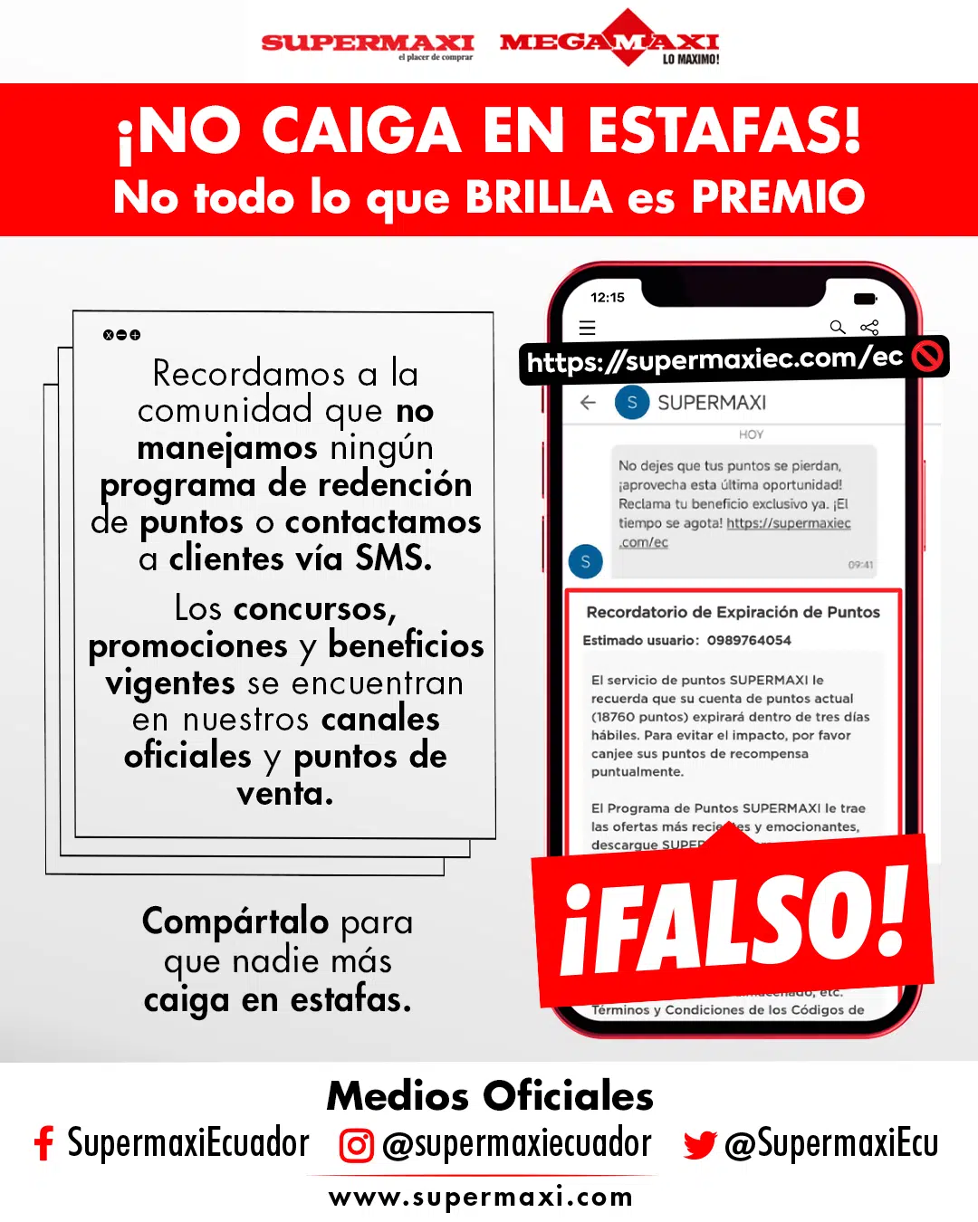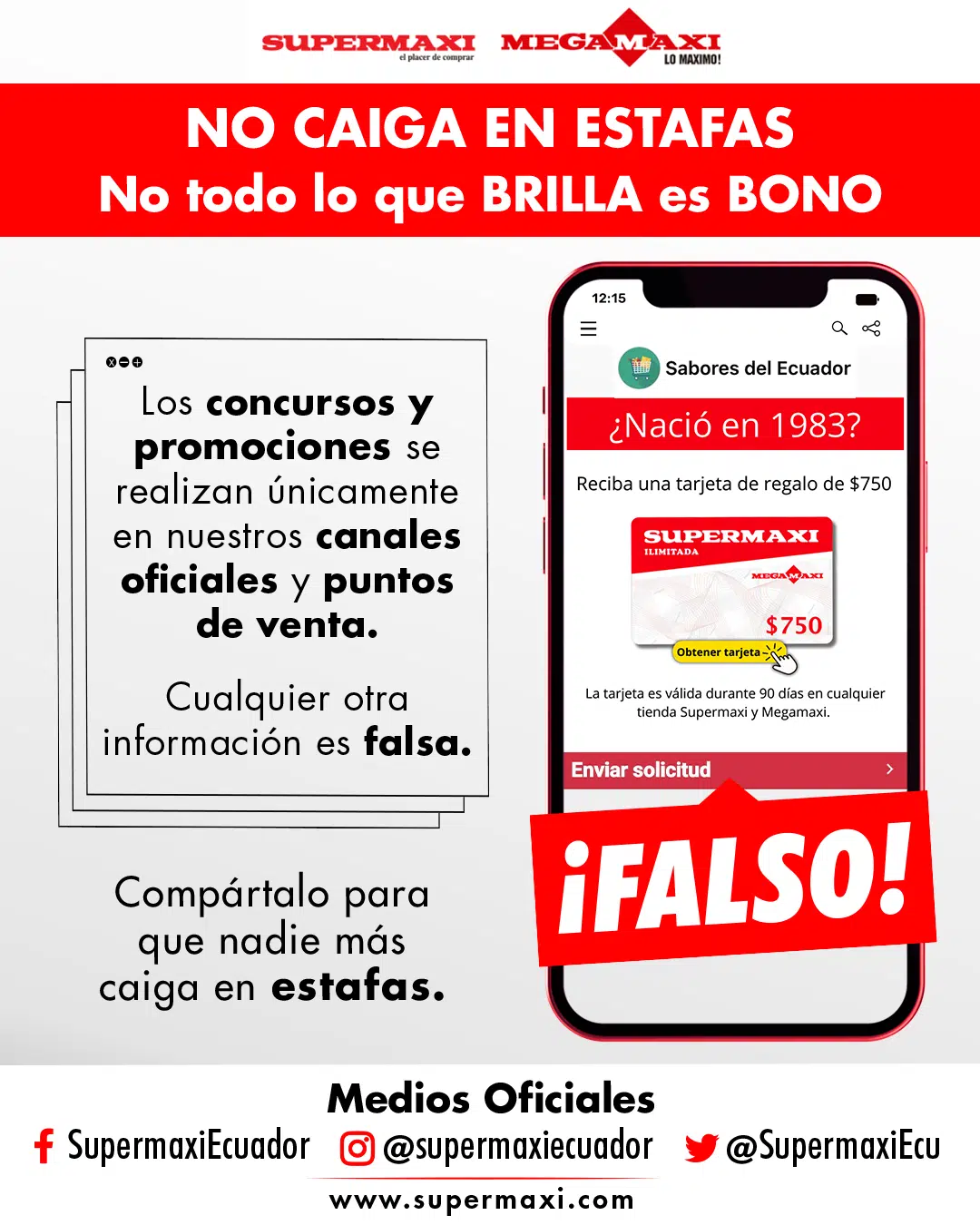 Todos nuestros concursos y promociones se realizan únicamente en nuestros canales oficiales y puntos de venta.