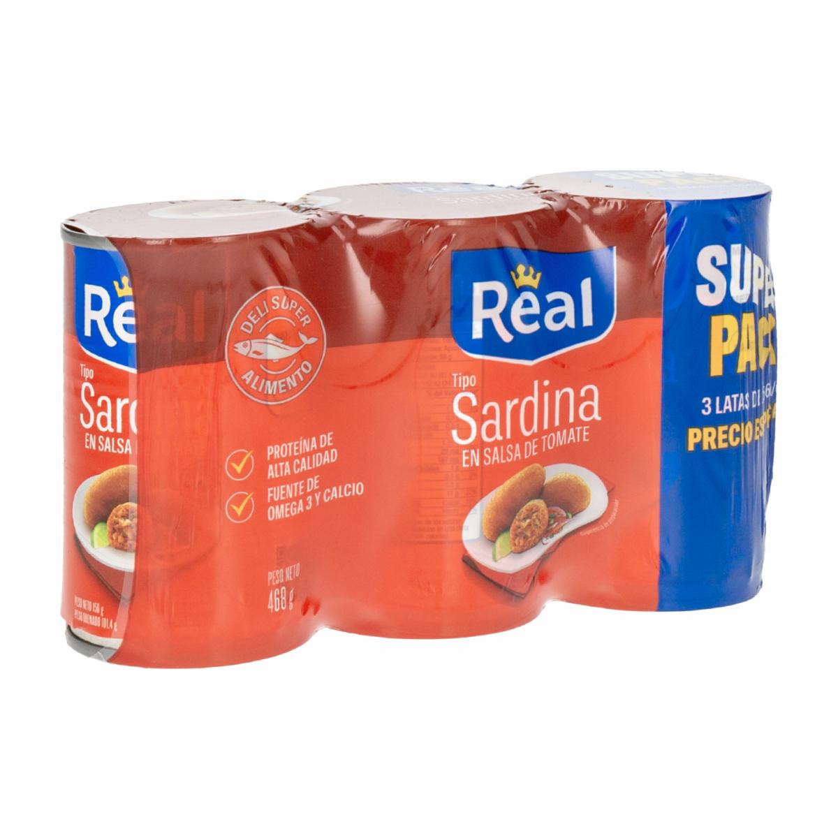 consultando preciosSardina En Salsa De Tomate REAL 3 X 156 G – REAL. Disponible en nuestros locales. Precio y stock pueden variar según la tienda.