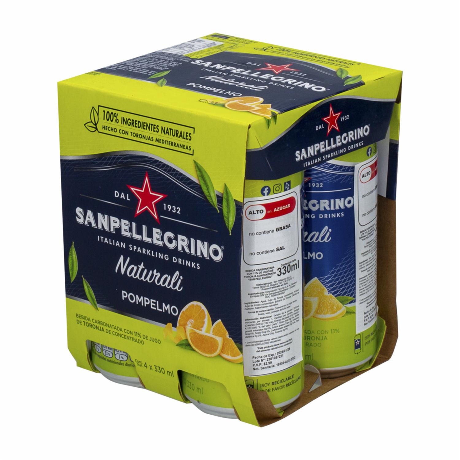 consultando preciosBebida Toronja Pompelmo 4pack S.PELLEGRINO 4 X 330 G – S.PELLEGRINO. Disponible en nuestros locales. Precio y stock pueden variar según la tienda.
