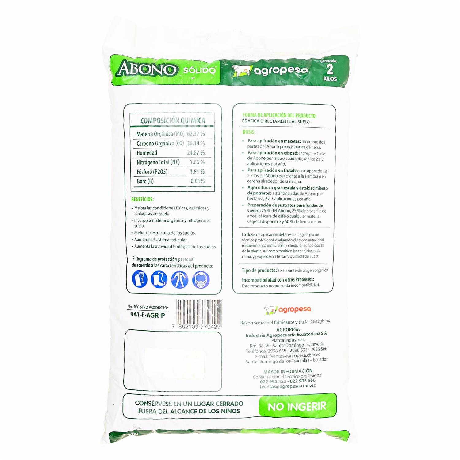Abono Solido AGROPESA 2000g – AGROPESA. Disponible en nuestros locales. Precio y stock pueden variar según la tienda.