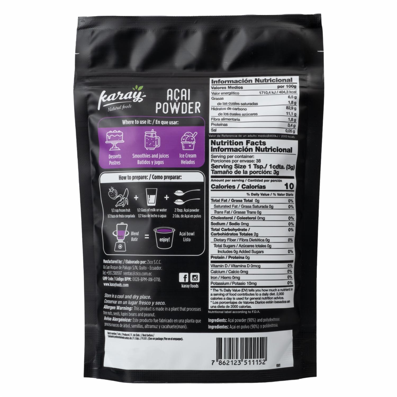 Acai En Polvo KARAY 113 g – KARAY. Disponible en nuestros locales. Precio y stock pueden variar según la tienda.