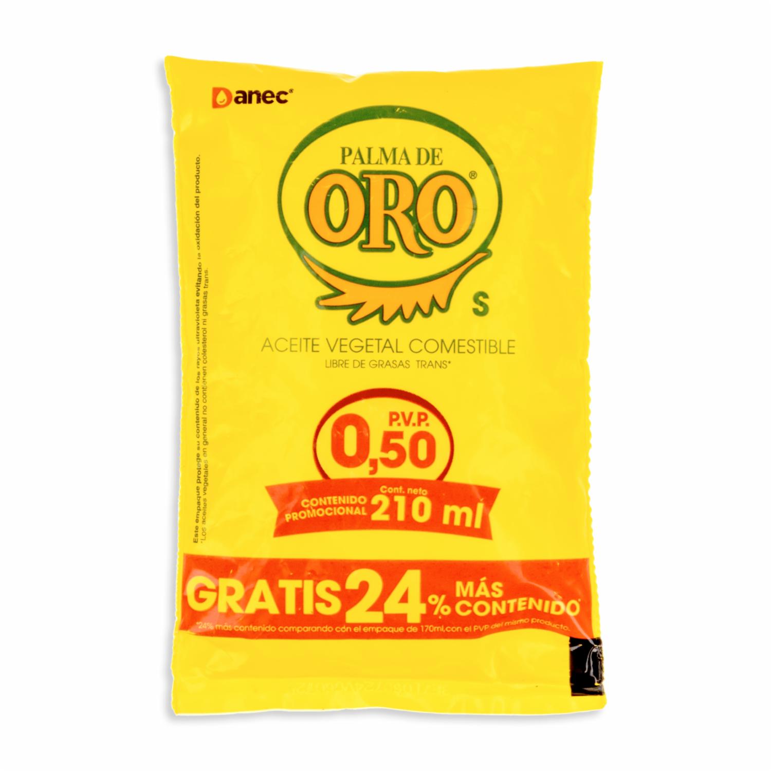 Aceite Comestible Vegetal De Palma PALMA DE ORO 210 Ml