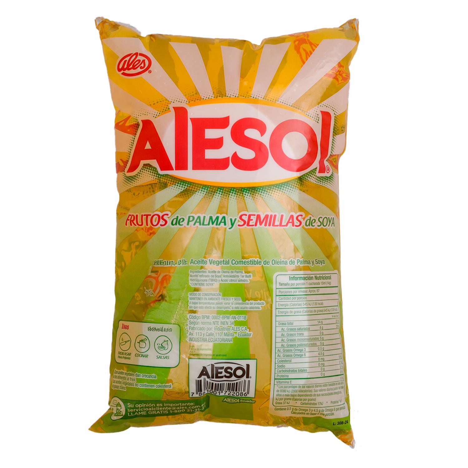 Aceite Comestible Vegetal Oleína De Palma Y Soya ALESOL 1000 Ml