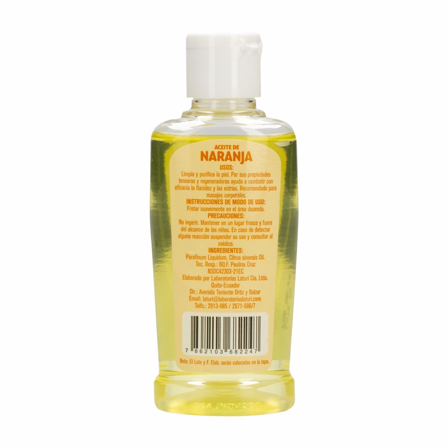 El Aceite Corporal de Naranja LATURI es un producto natural que hidrata y nutre la piel, dejándola suave y sedosaSu fórmula contiene aceites esenciales de naranja, almendra dulce y jojoba, que ayudan a mejorar la apariencia de la piel y a prevenir la sequedad y el envejecimiento prematuroEste aceite corporal es ideal para usar después de la ducha o el baño, ya que se absorbe rápidamente y no deja sensación grasosaTambién se puede utilizar para dar masajes relajantes y aromaterapia