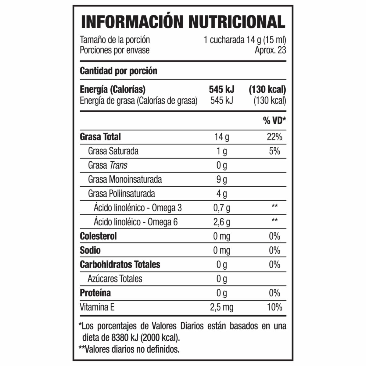 - - Tiene un sabor suave y ligero, lo que lo hace ideal para usar en diferentes preparaciones culinarias, como aderezos para ensaladas, marinados y salteados.