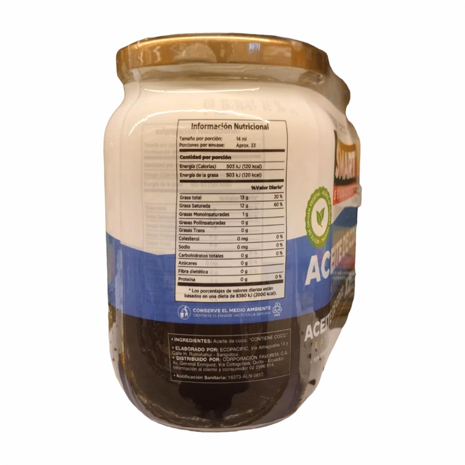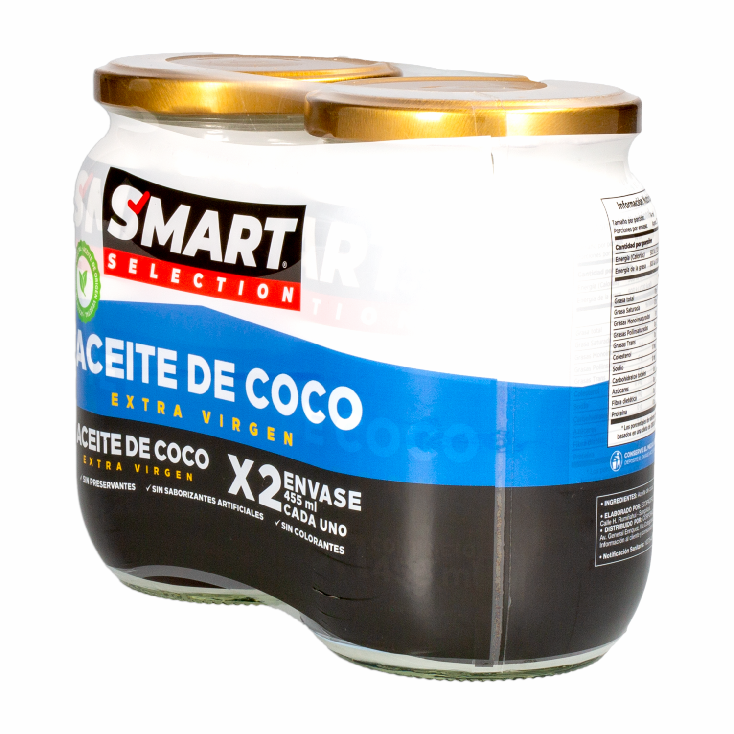 Aceite De Coco 100% Extra Virgen Sin Preservantes SMART SELECTION 2 X 455 Ml