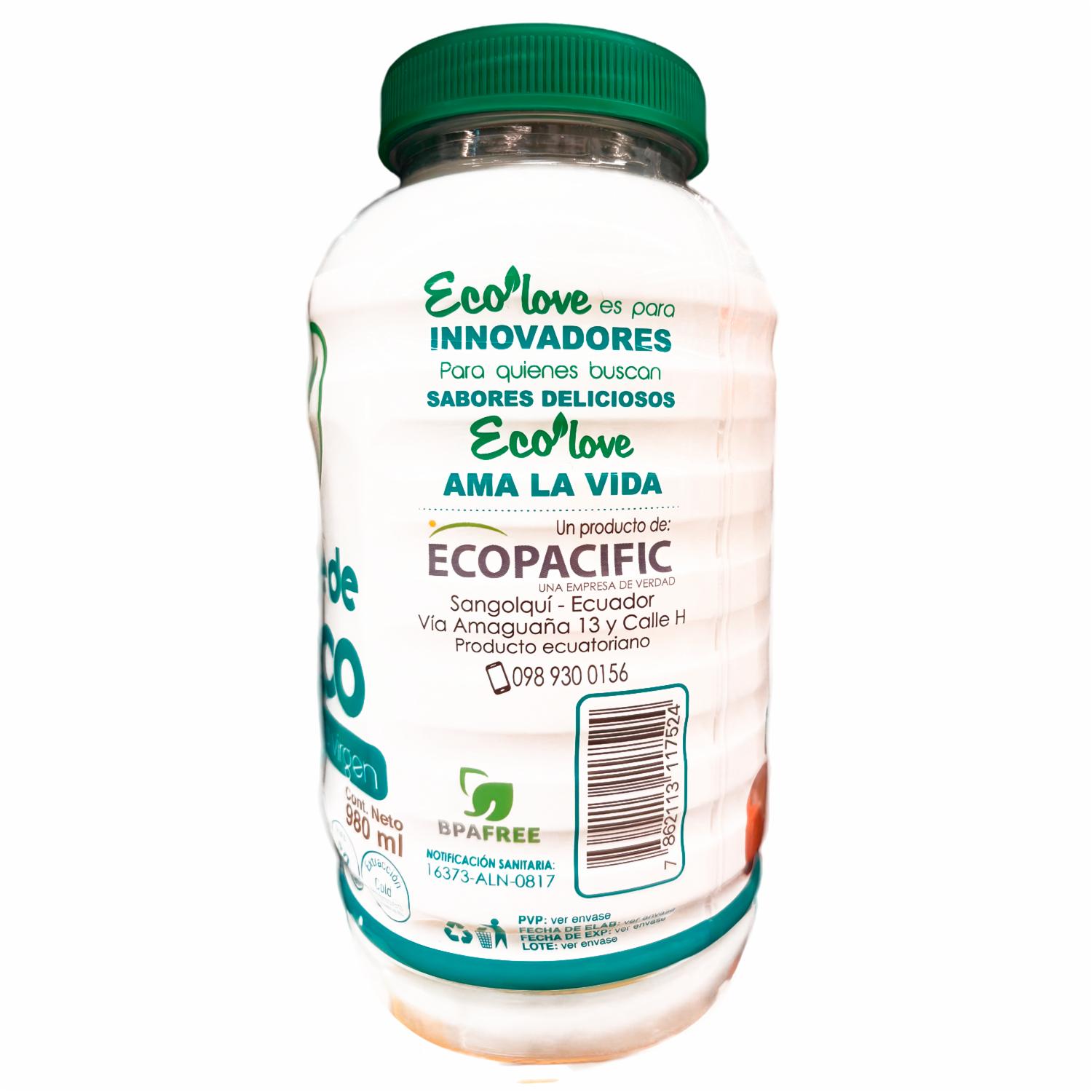 Aceite De Coco Extra Virgen ECOLOVE 980 Ml