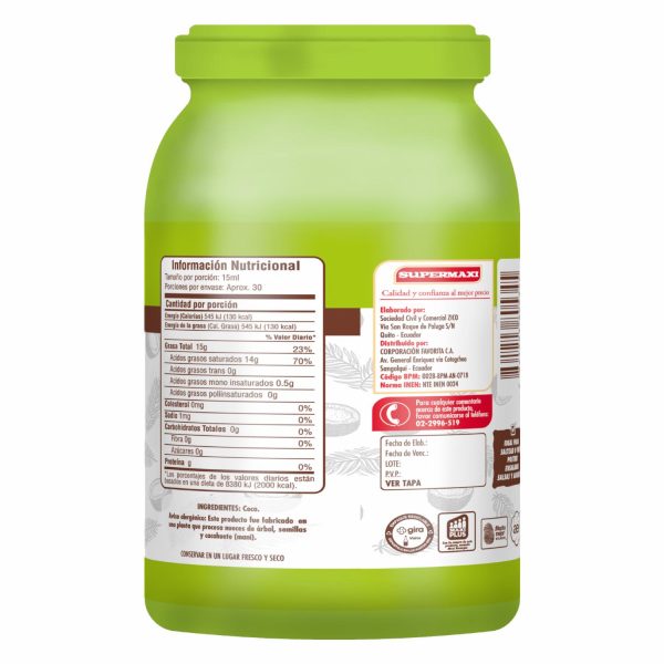 Aceite De Coco Extra Virgen SUPERMAXI 450 G