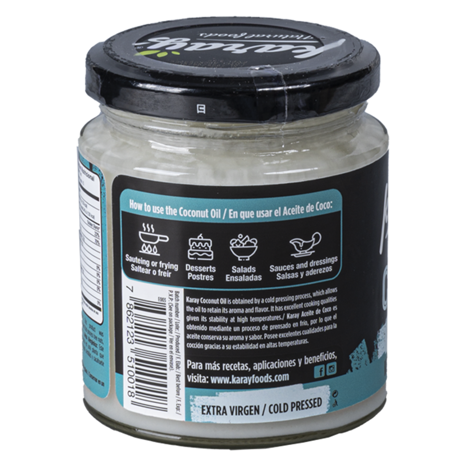 - Obtenido mediante un proceso de prensado en frio que permite que el aceite conserve la mayoría de cualidades y micronutrientes de el coco. No pasa por ningún proceso químico de blanqueamiento o refinamiento