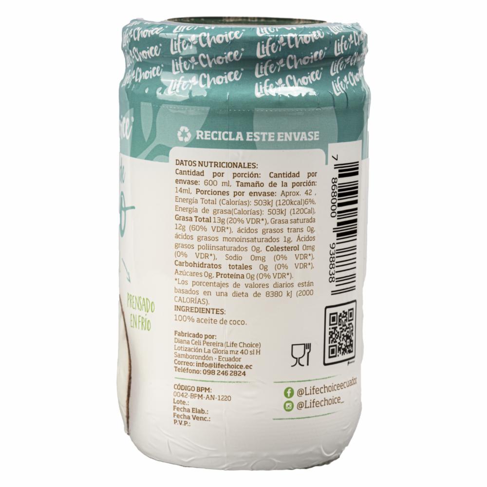 Aceite De Coco LIFE CHOICE 600 Ml
