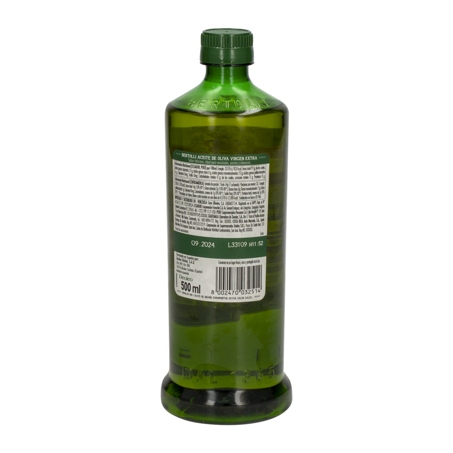 - El aceite de oliva extra virgen de BERTOLLI es apreciado por su aroma frutado, su sabor equilibrado y su bajo contenido de acidez, lo que lo convierte en una opción versátil y deliciosa para realzar el sabor de tus comidas