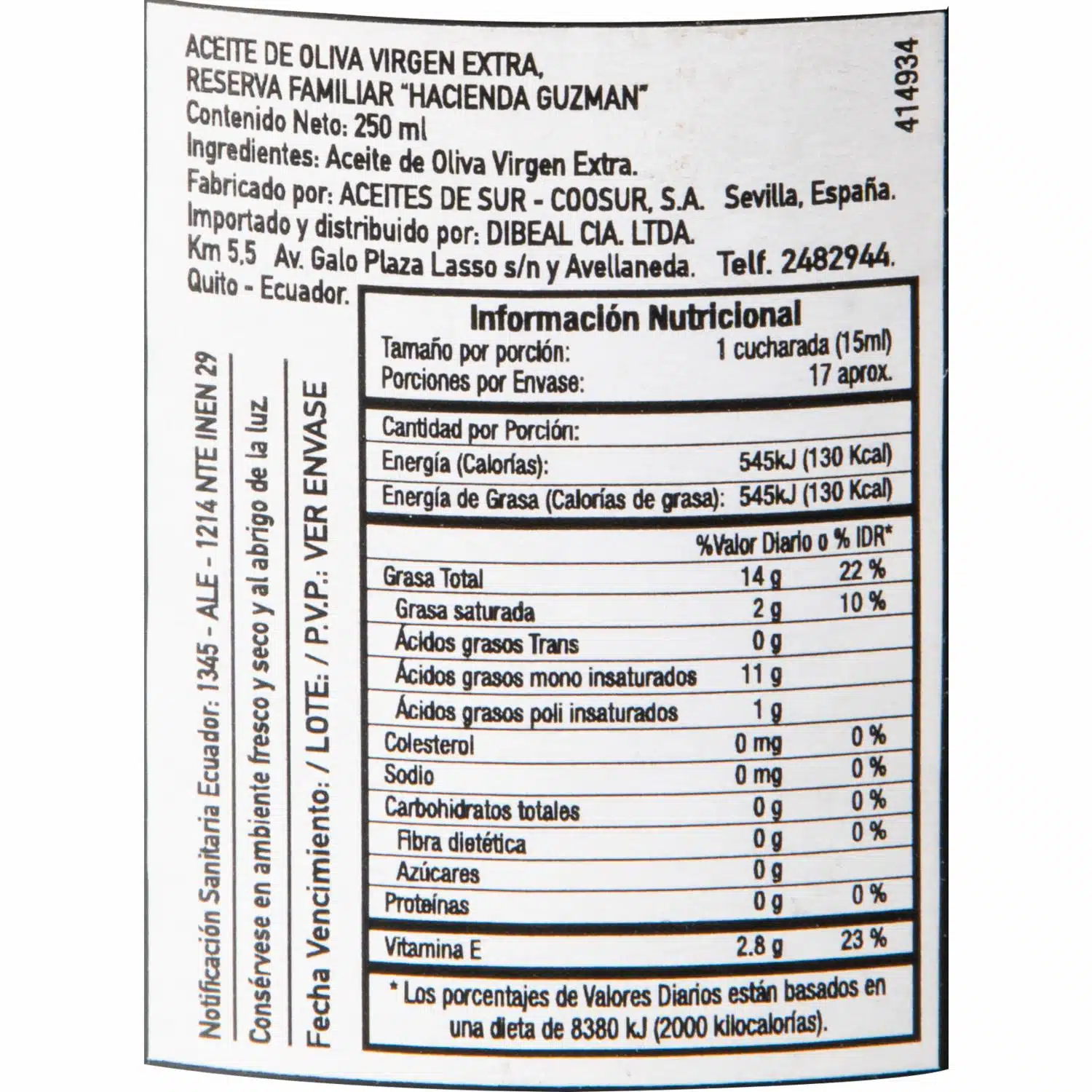 Aceite De Oliva Guzman Extra Virgen LA HACIENDA GUZMÁN 250 Ml
