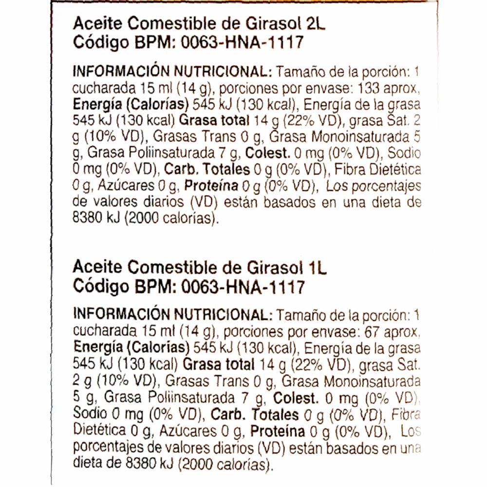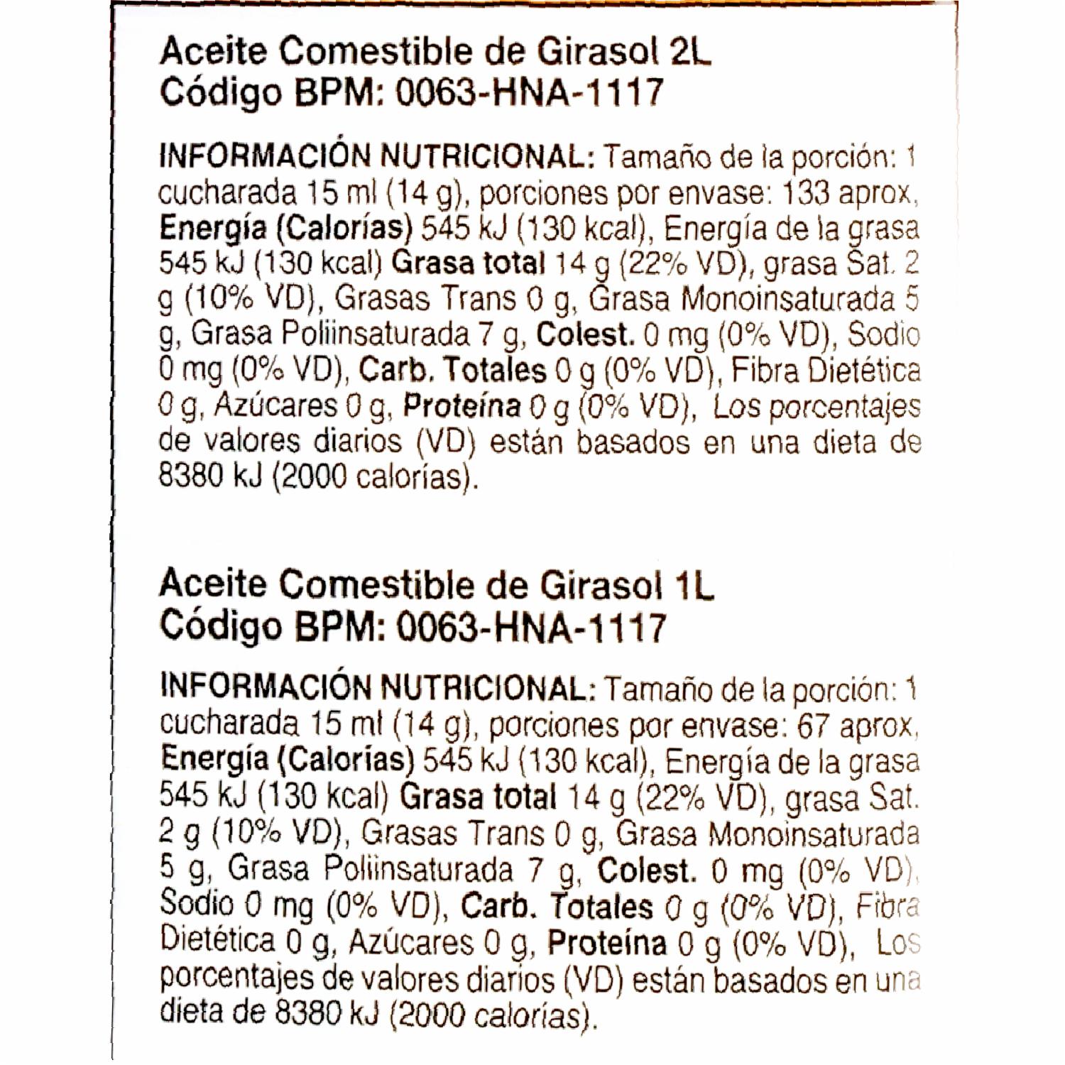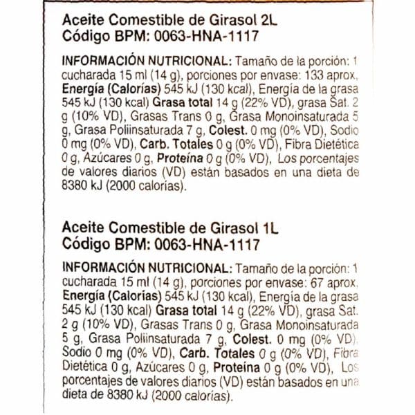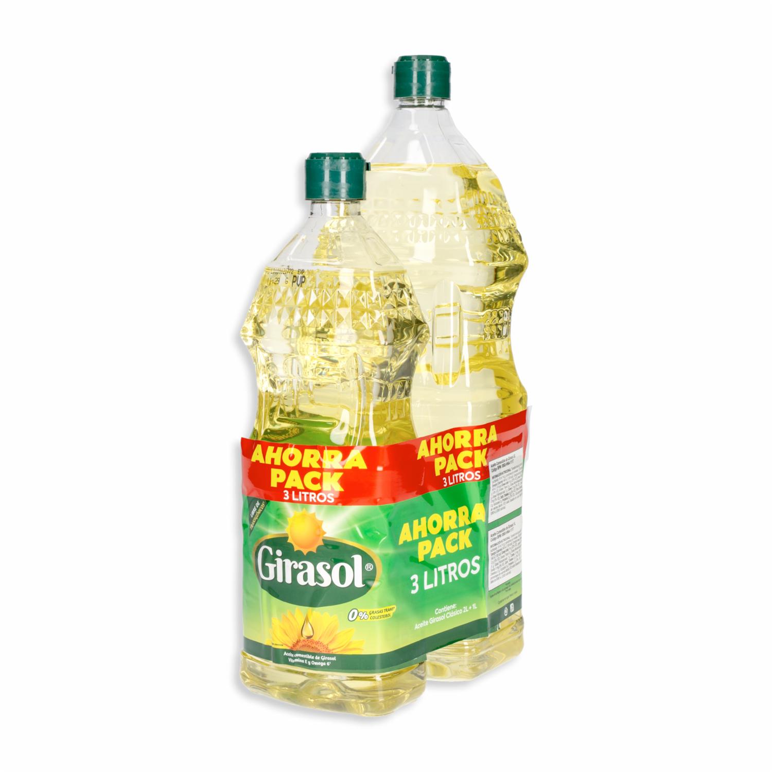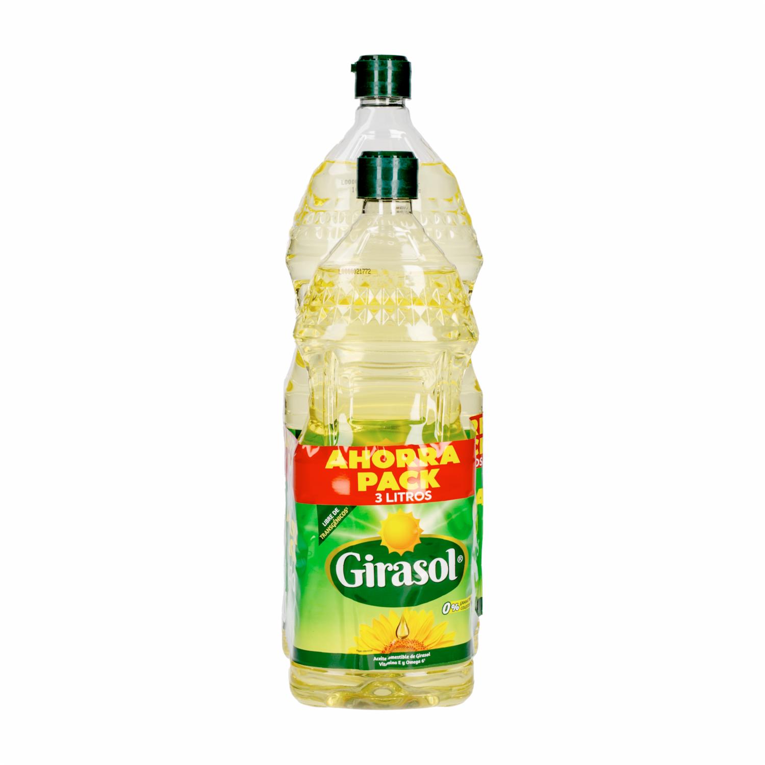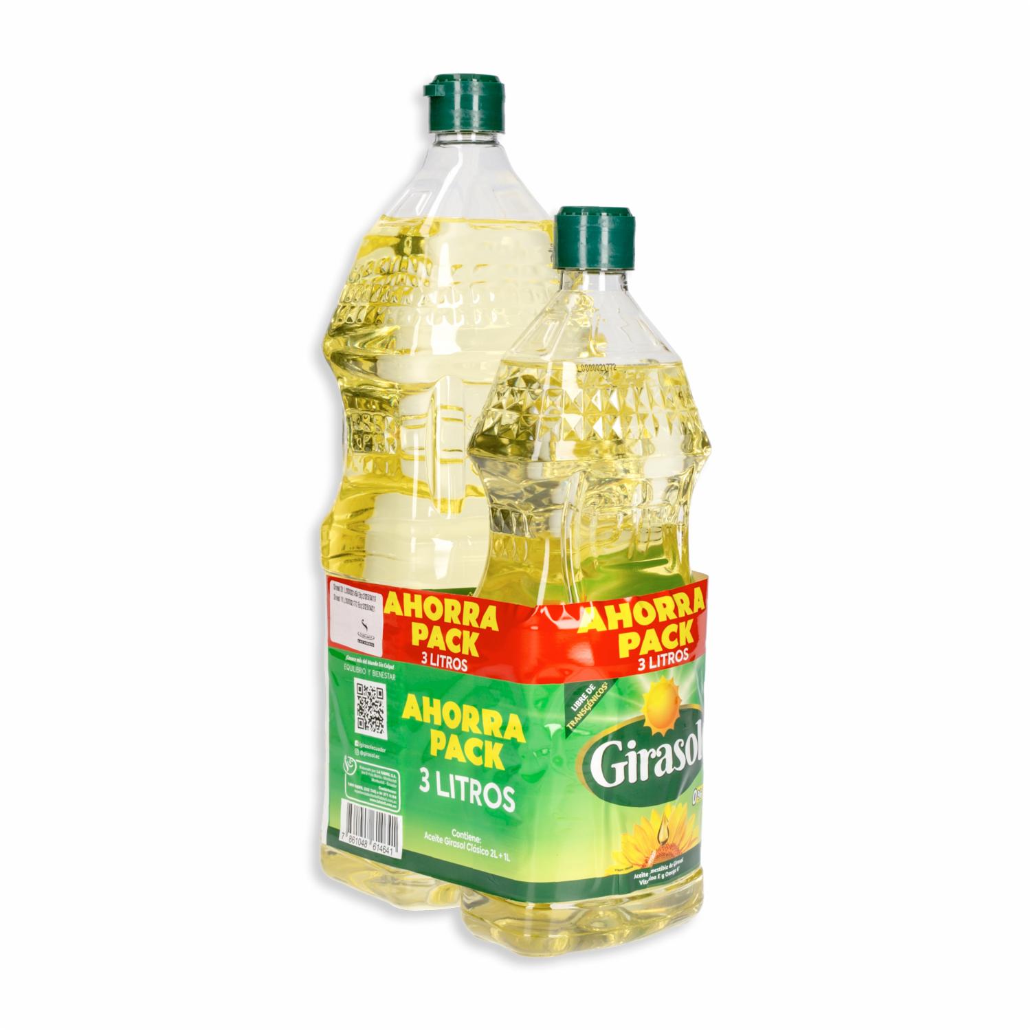 • El pack de aceite vegetal de girasol incluye una botella de 2 litros y otra de 1 litro, totalizando 3000 ml