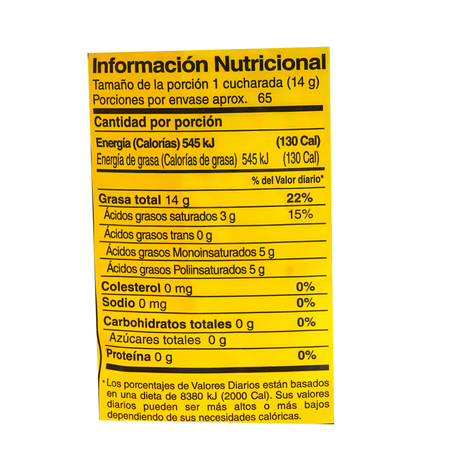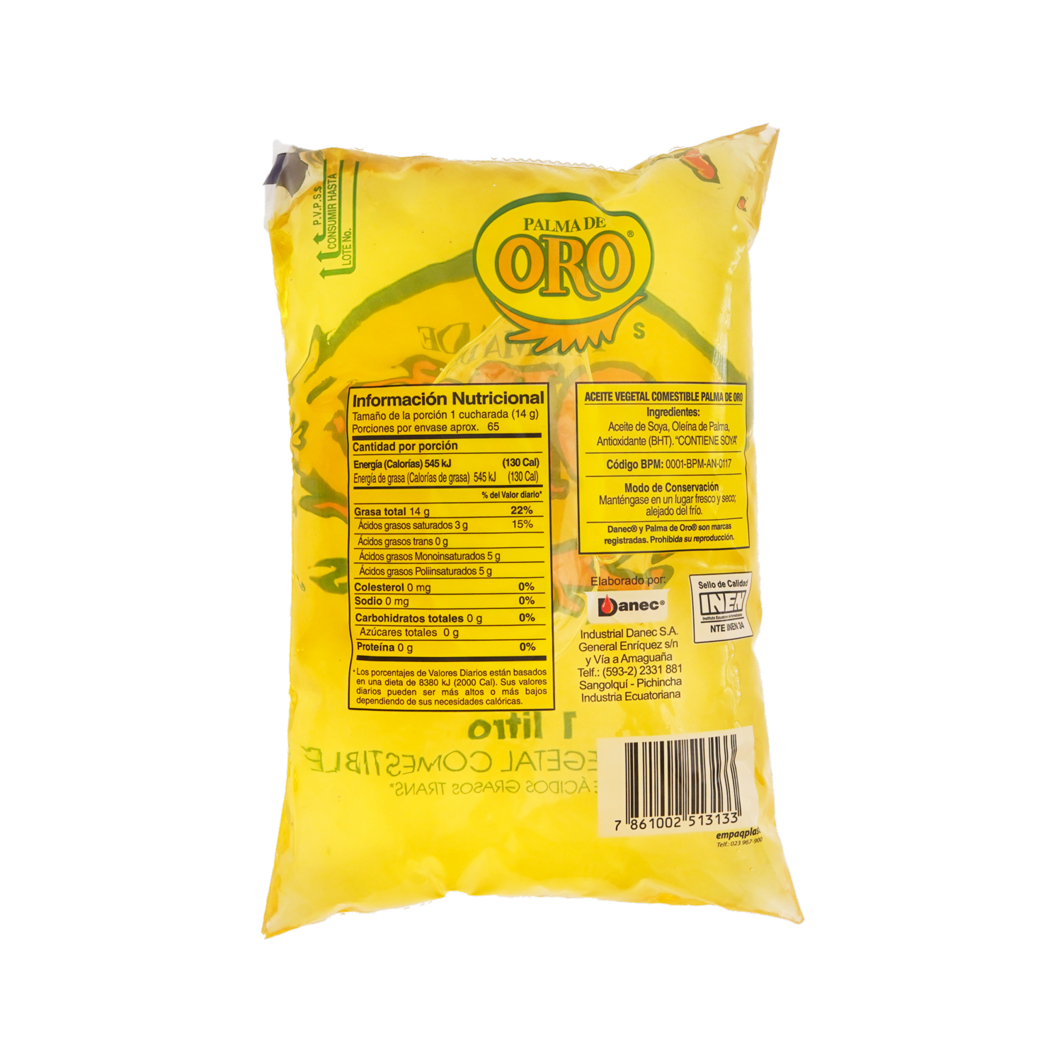 • Aceite vegetal comestible. Cero colesterol y grasas trans. 100% oleína de palma