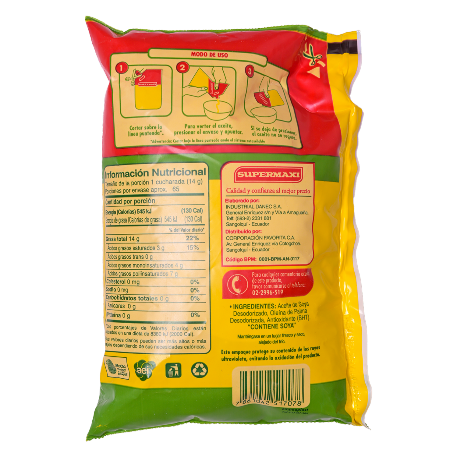 Aceite Vegetal Comestible SUPERMAXI Funda 1000 Ml