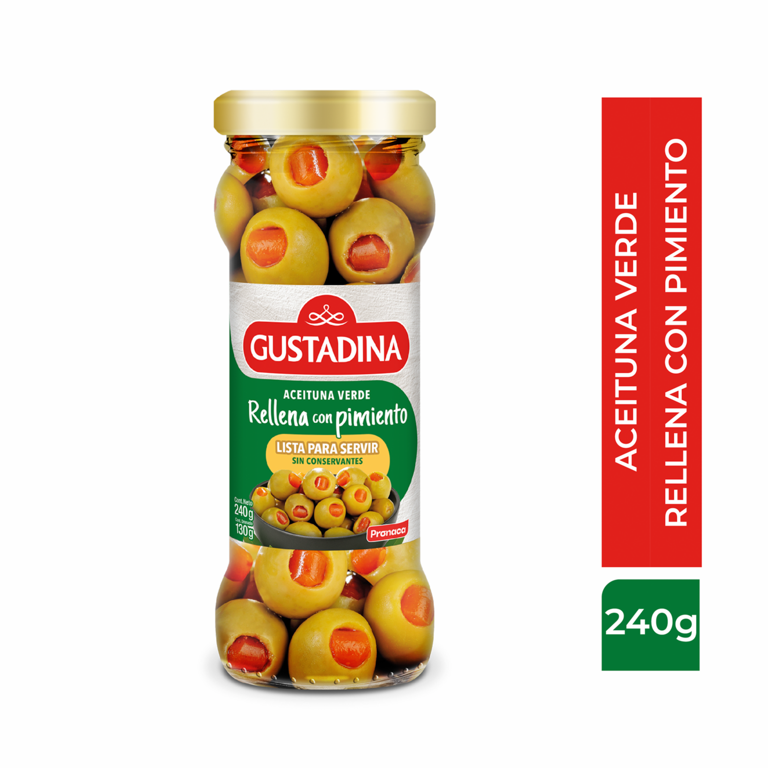 - - Aceituna rellena con pimiento de la marca Gustadina.