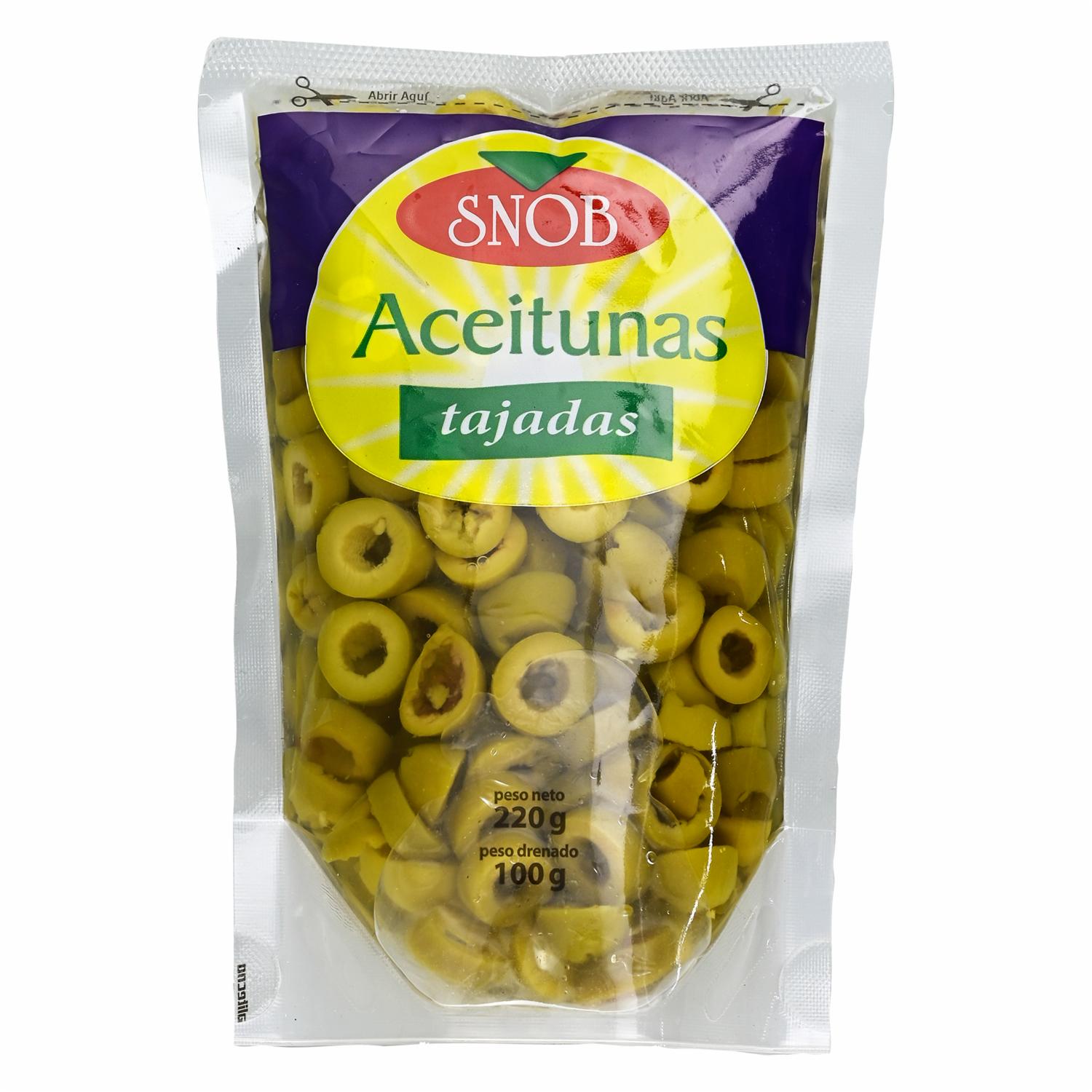 consultando preciosAceituna Tajada Doy Pack SNOB 220 G – SNOB. Disponible en nuestros locales. Precio y stock pueden variar según la tienda.