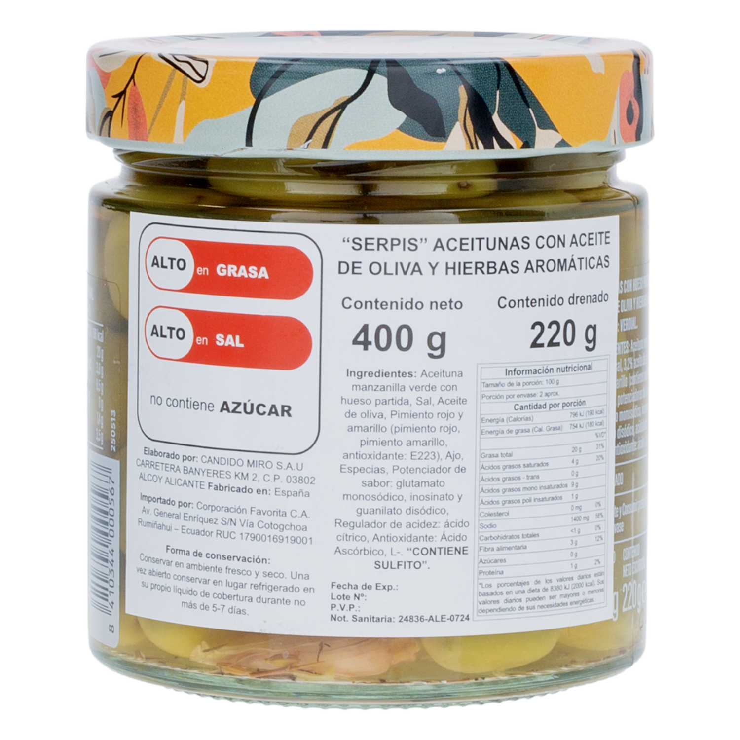 Aceitunas A Las Finas Hierbas SERPIS 400 G