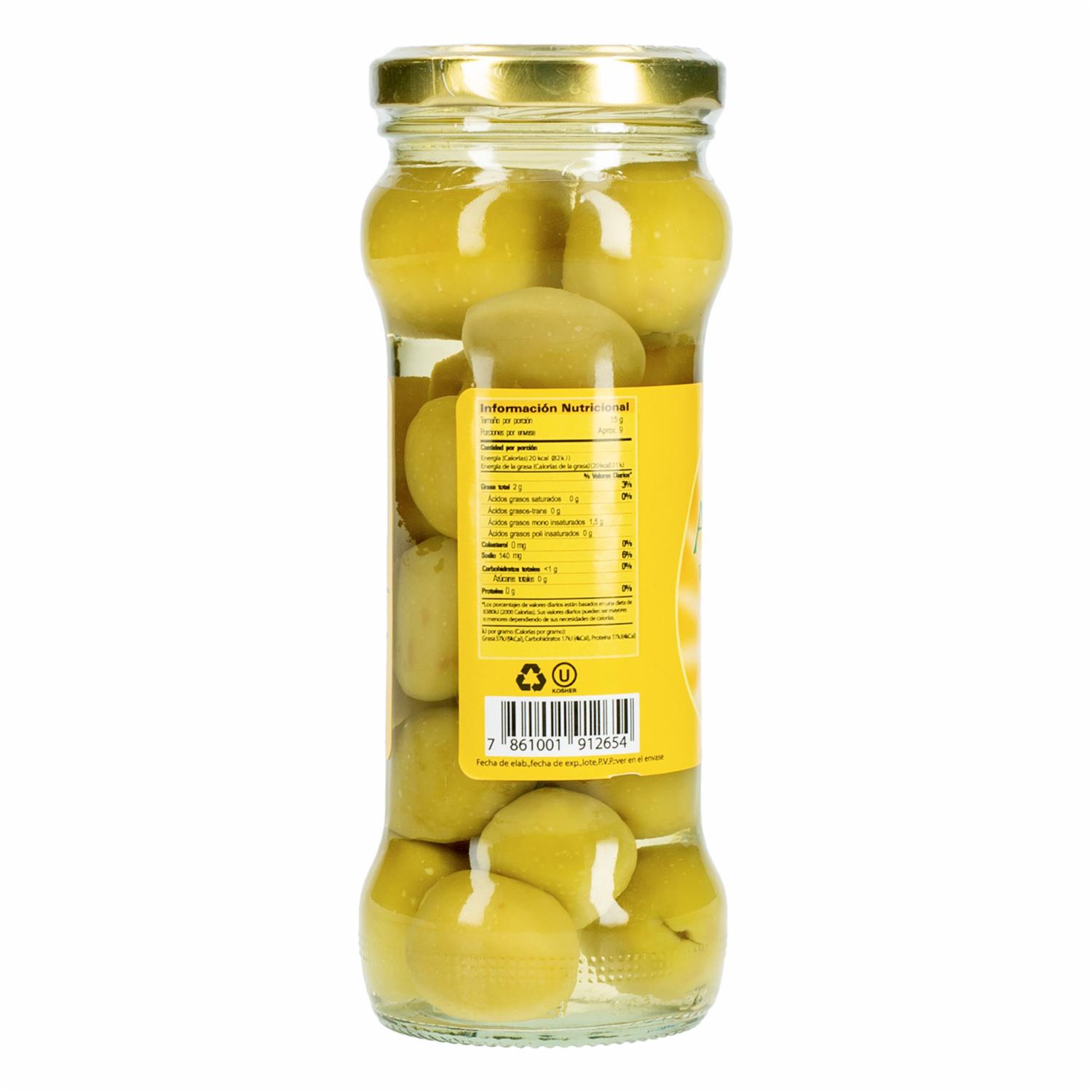 - Aceitunas verdes entera salmuera, las aceitunas de mesa reúnen los cuatro sabores básicos que detecta el paladar: ácido, amargo, dulce y salado