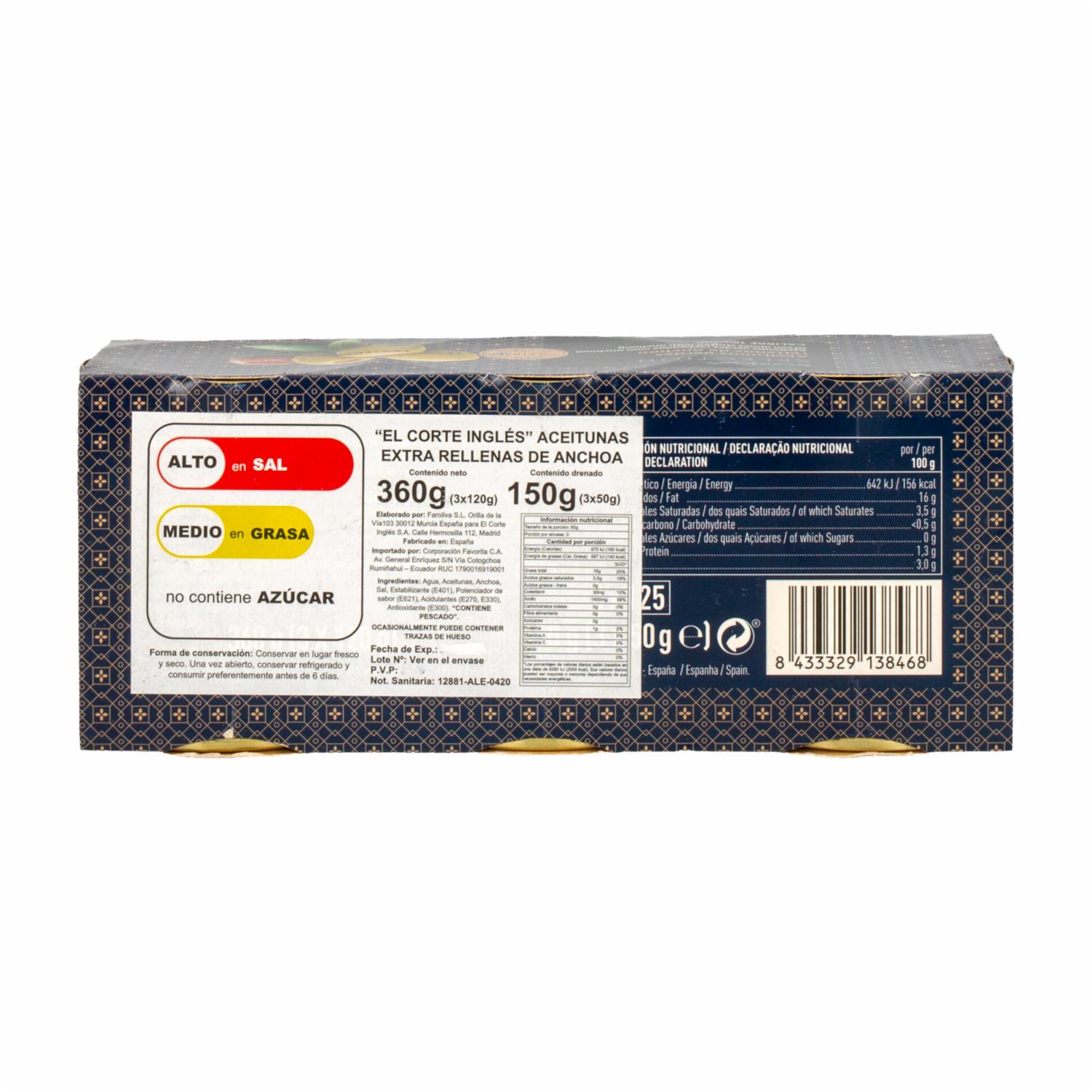 Aceitunas Extra Rellena Anchoa EL CORTE INGLÉS 360 g