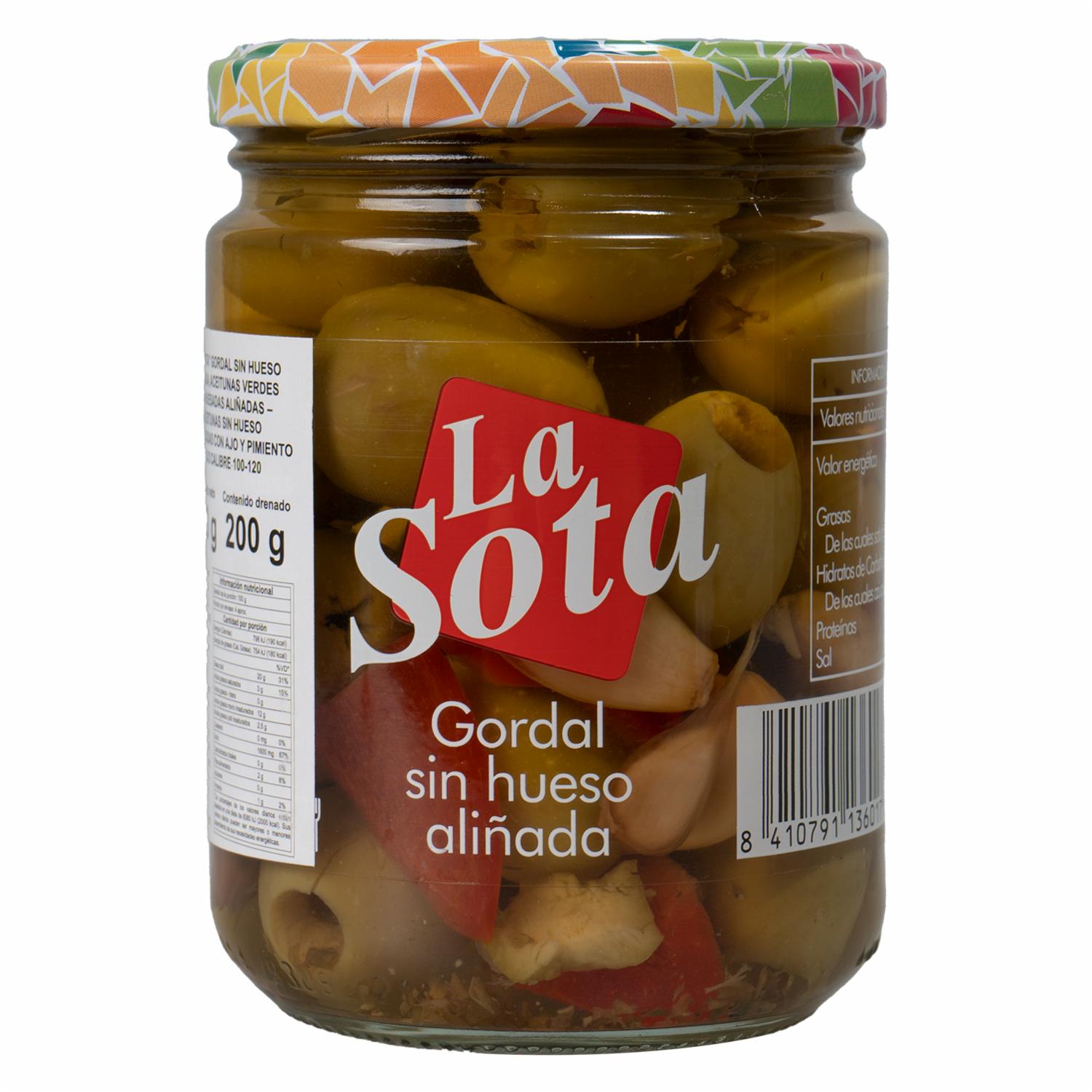 Aceitunas Gordal Con Ajo Y Pimiento Rojo LA SOTA 420 G