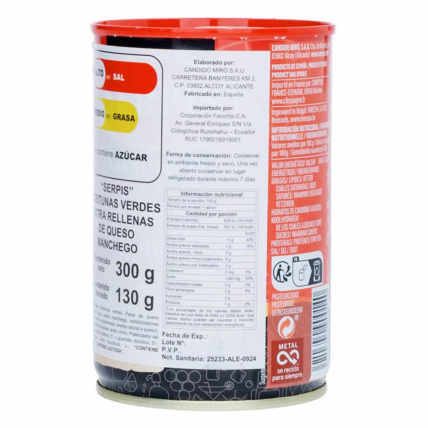 Aceitunas Rellena Con Queso Manchego SERPIS 300 G