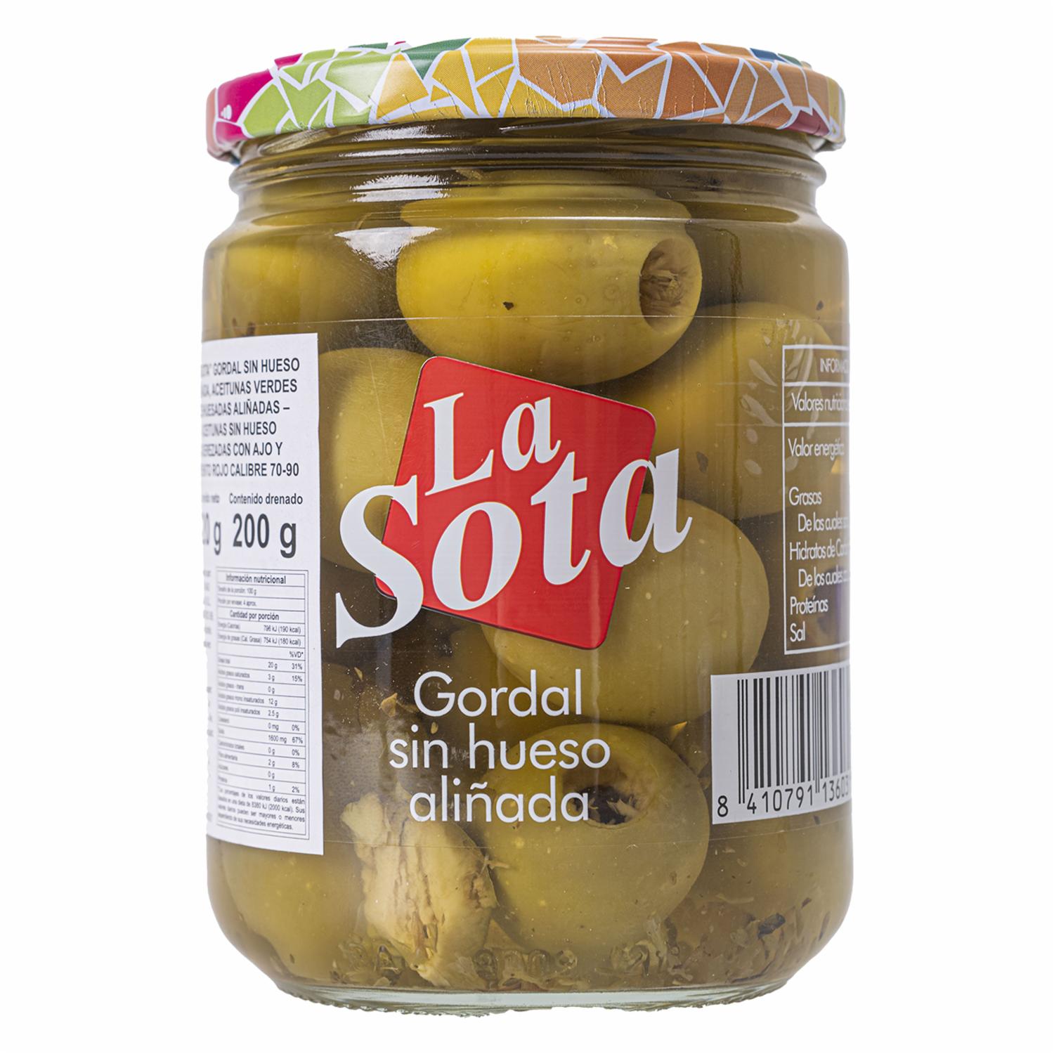 Aceitunas Sin Hueso Aderezadas Ajo Pimiento Rojo LA SOTA 420 G