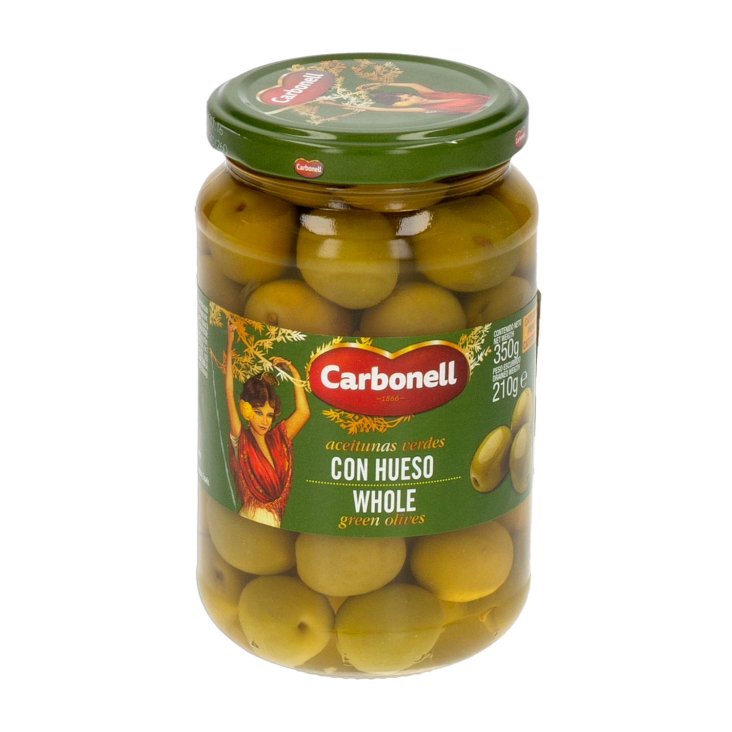 - Las aceitunas verdes con hueso de la marca CARBONELL, en frasco de 350 g, son un producto clásico y versátil que ofrece el sabor auténtico y la textura jugosa de las aceitunas verdes, conservadas en su estado natural con el hueso