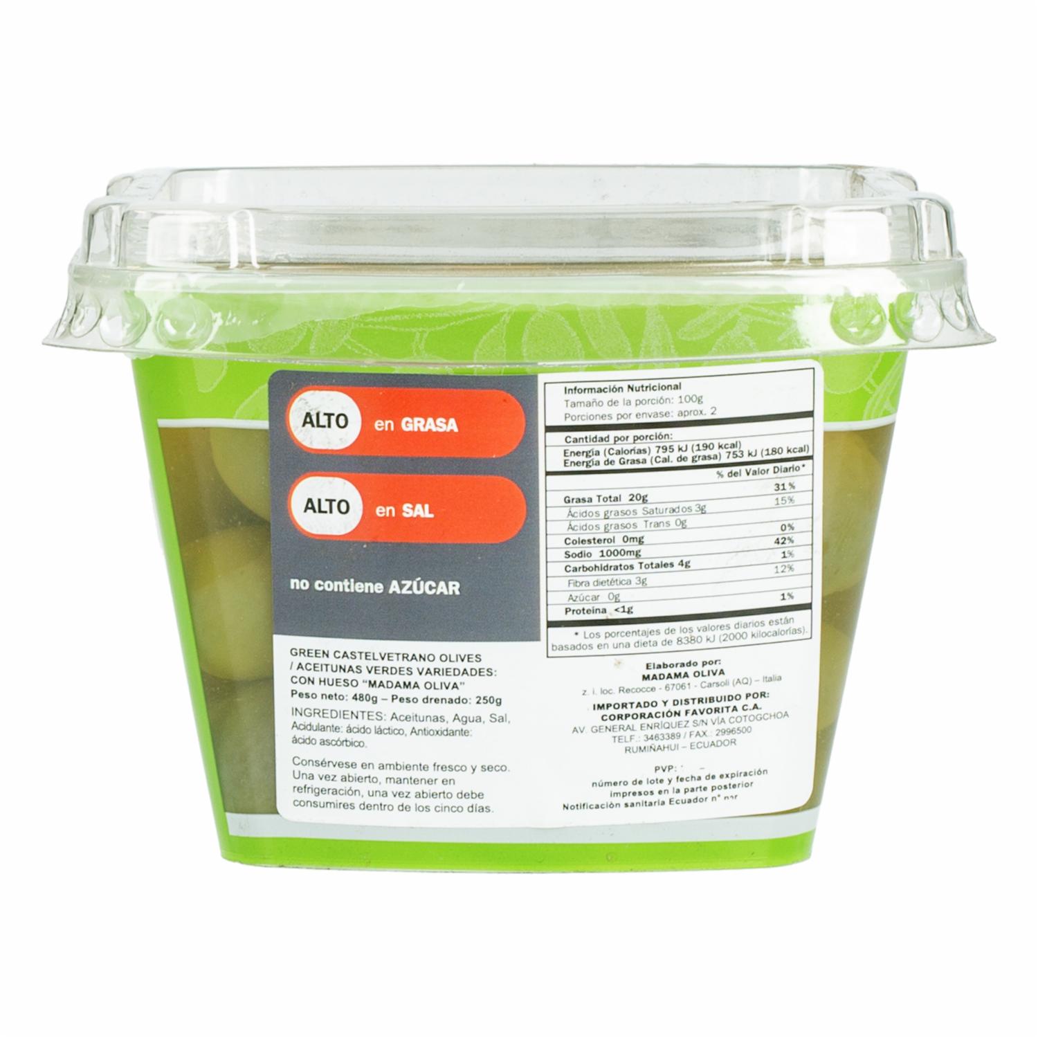 - - Las aceitunas verdes con hueso Madama Oliva son de alta calidad y sabor