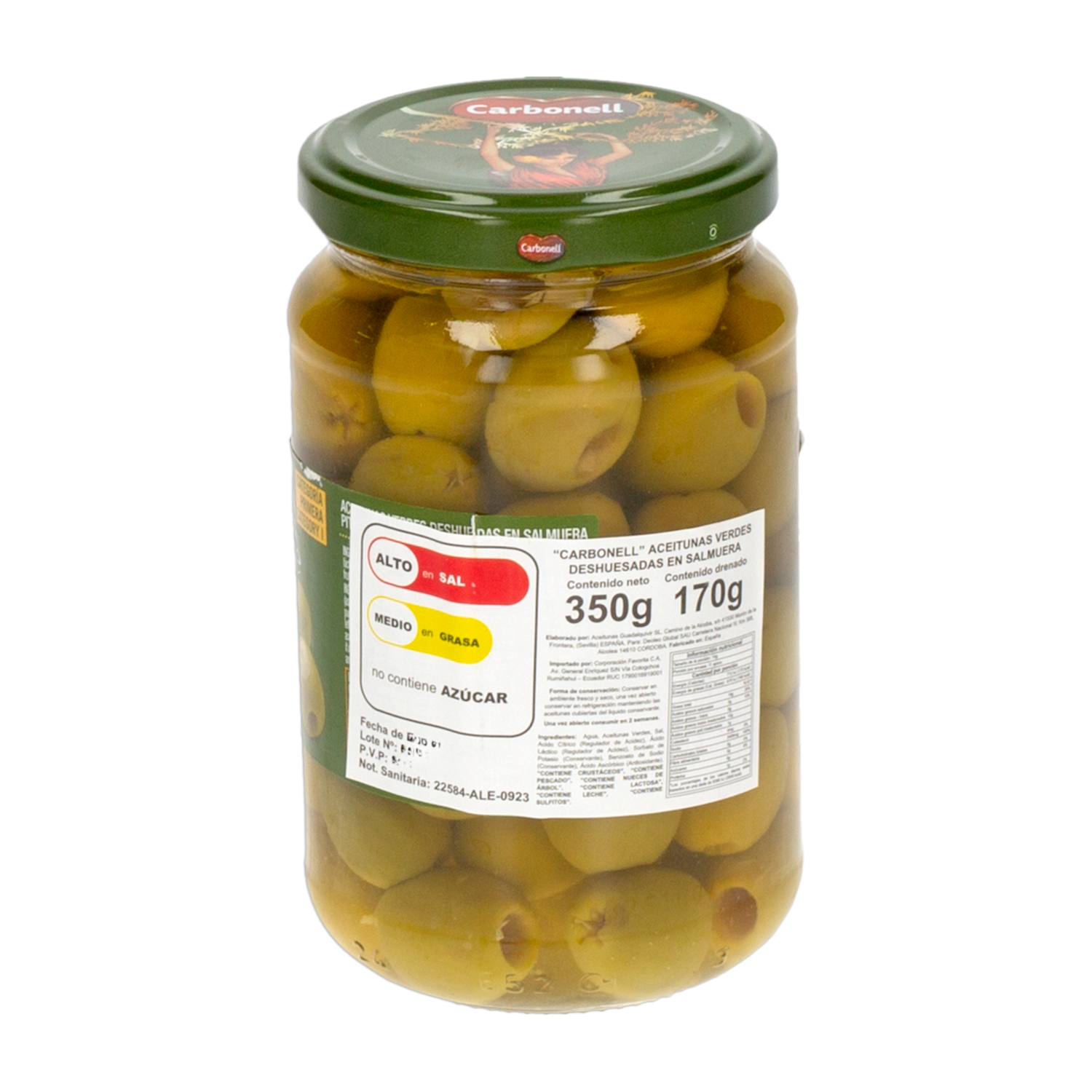 - Las aceitunas verdes deshuesadas de la marca CARBONELL, en frasco de 350 g, ofrecen el delicioso sabor y la textura jugosa de las aceitunas verdes sin la molestia de tener que quitarles el hueso