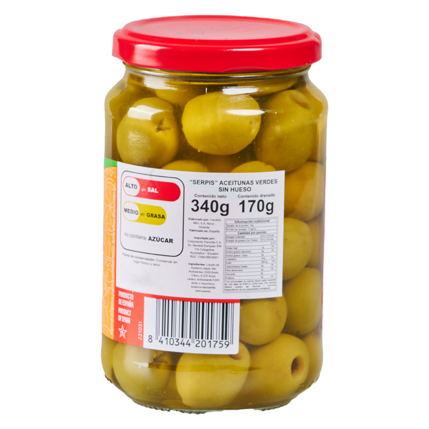 Aceitunas Verdes En Manzanilla Sin Hueso SERPIS 340 G