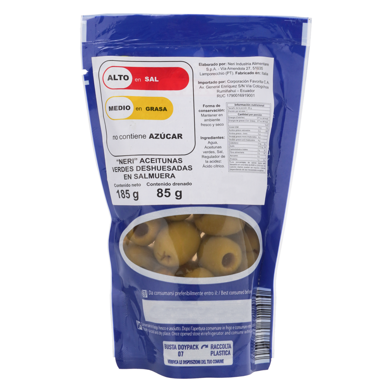 Aceitunas Verdes En Salmuera NERI 185 G – NERI. Disponible en nuestros locales. Precio y stock pueden variar según la tienda.