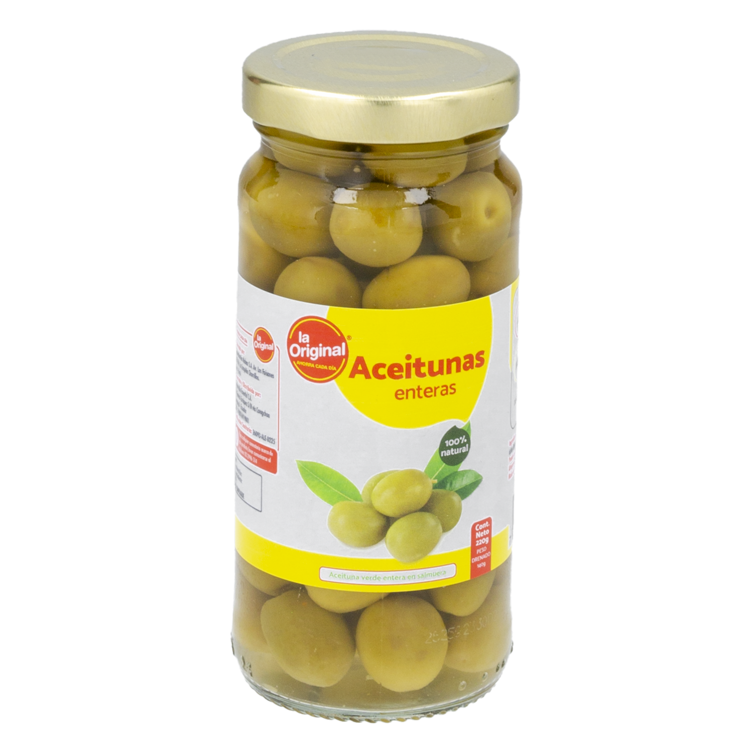 - Clásicas, jugosas y llenas de sabor, las aceitunas verdes enteras LA ORIGINAL son el acompañamiento ideal para tus aperitivos y recetas mediterráneas. Su textura firme y su frescura garantizan cada bocado. Perfectas para disfrutar solas, en ensaladas o en tus platos favoritos