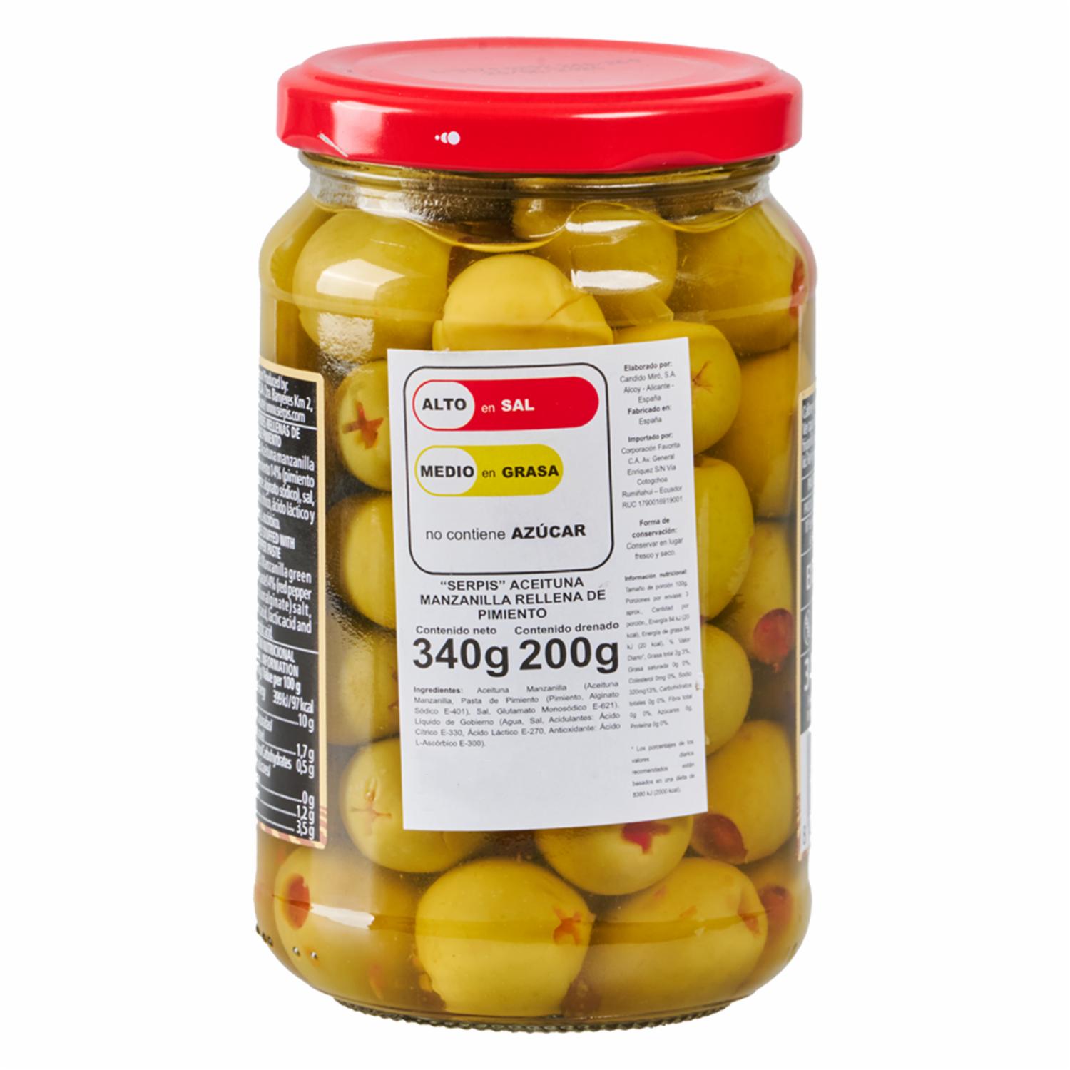 Aceitunas Verdes Rellenas Con Pimiento SERPIS 340 G