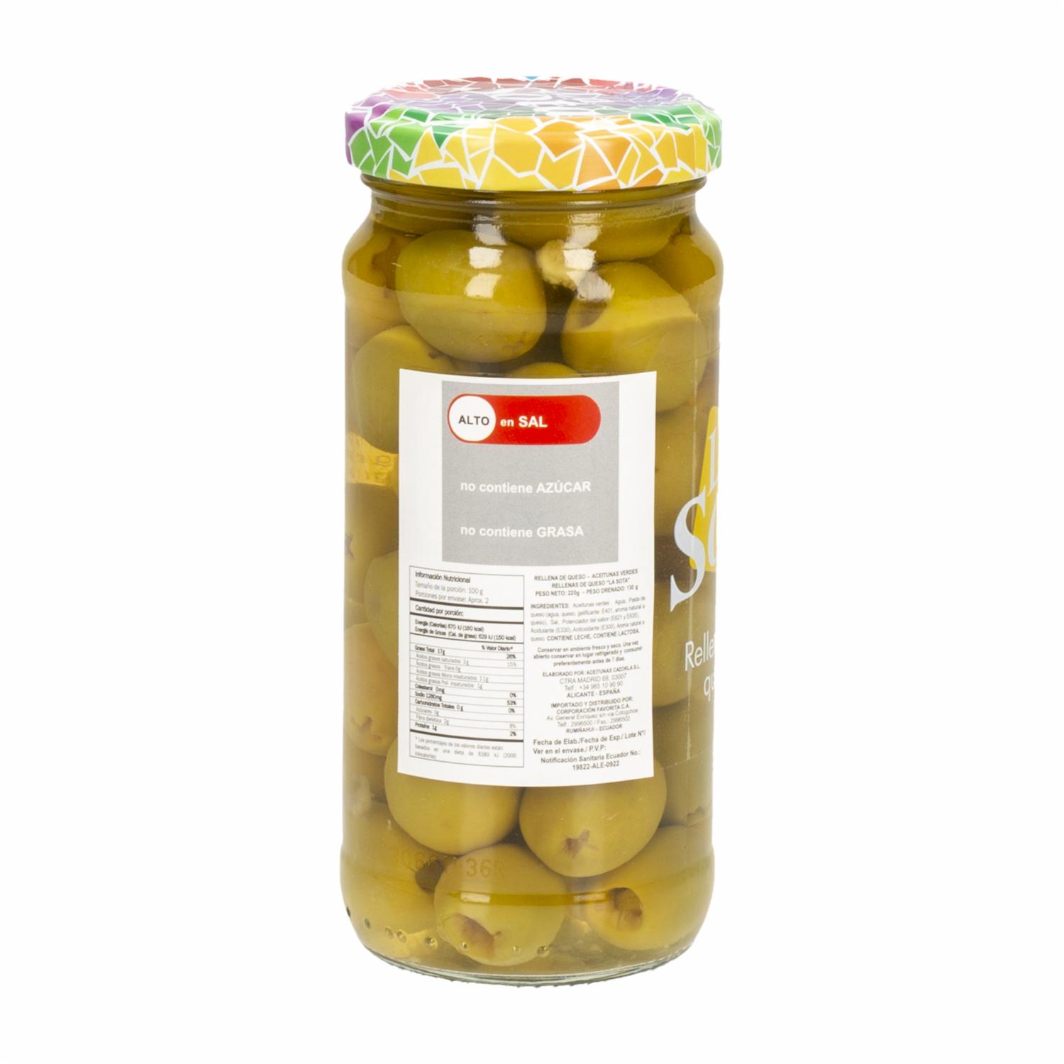 Aceitunas Verdes Rellenas Queso LA SOTA 220 G