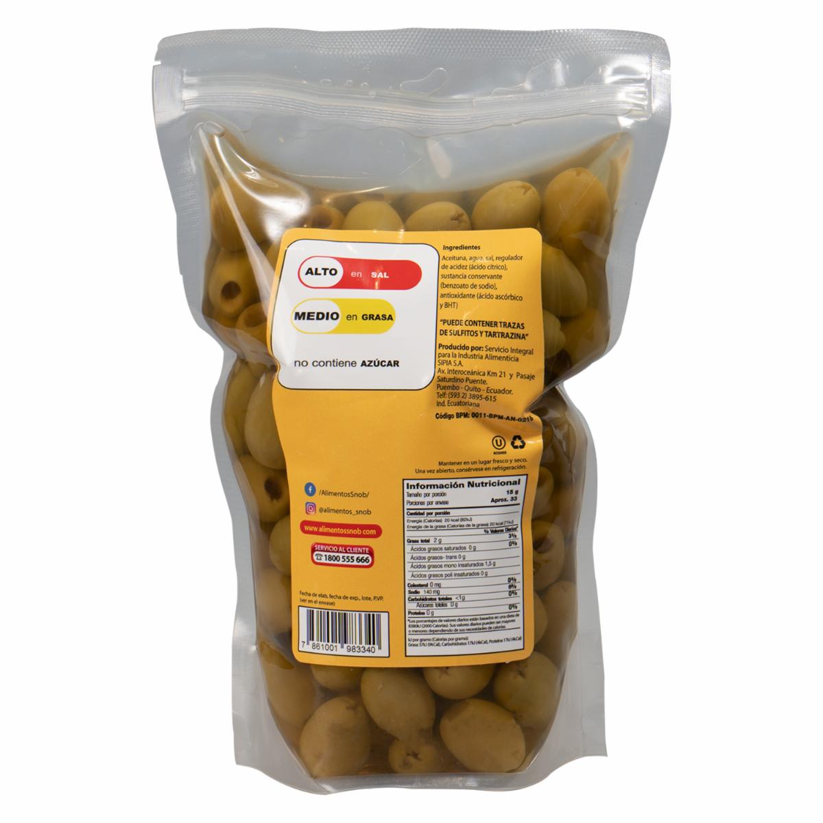 Aceitunas Verdes Sin Hueso SNOB 1 000 G