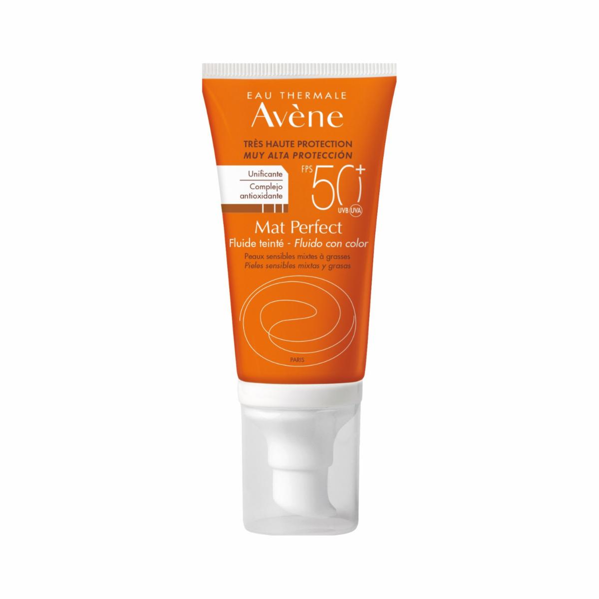 - El protector solar Mat Perfect Fluido FPS 50+ con color ofrece un nivel de protección solar muy alto para la piel de mixta a grasa y sensible