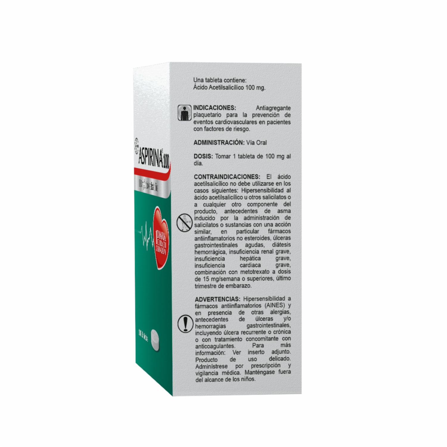 - Aspirina® 100 Ayuda A Prevenir 1 De Cada 3 Infartos En Pacientes De 40 A 70 Años Con 2 O Más Factores De Riesgo Como Sobrepeso, Sedentarismo, Tabaquismo, Tensión O Colesterol Altos, Debido A Que Es Un Antiagregante Plaquetario, El Cual Inhibe La Formación De Coágulos En La Sangre. Esta Acción Es Muy Relevante En La Prevención Primaria Y Secundaria De Enfermedades Cardiovasculares