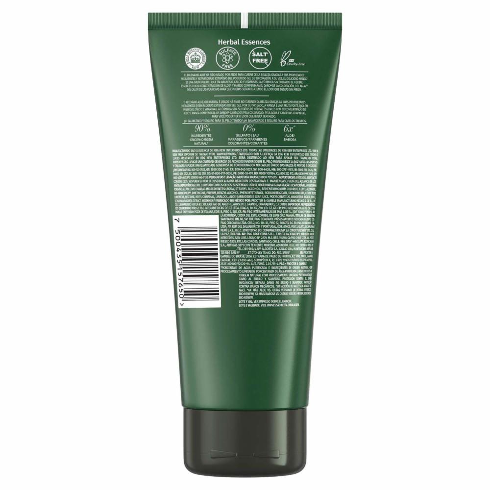 • El Acondicionador Herbal Essences 6x Aloe Y Mango Está Especialmente Inspirado En La Naturaleza Para Reparar Y Proteger* Tu Pelo Dejándolo Suave Y Lleno De Vida. Tiene Menos Químicos Que No Deseas, El Acondicionador 6x Aloe Y Mango No Tiene Sales°, Sulfatos, Parabenos Ni Colorantes