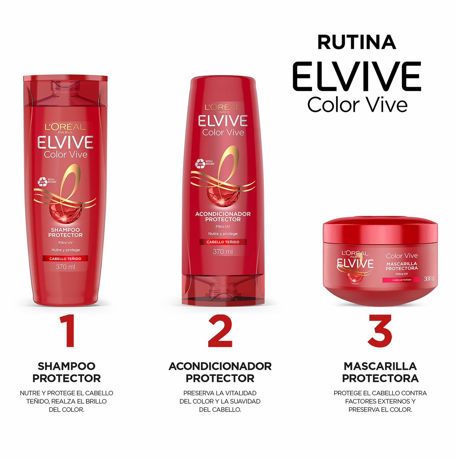 Consigue mayor nutrición y protección para un color prolongado y lleno de vida con el Acondicionador protector Elvive Color Vive para cabello teñido de LOréal Paris. -Funciona como acondicionador y protector. -Fórmula sin sal adicionada con filtro UV que nutre y protege el cabello teñido. -Brinda protección contra factores externos. -Tendrás un color prolongado y con mucho más brillo. -Preserva la vitalidad del color y da una suavidad extraordinaria en el cabello