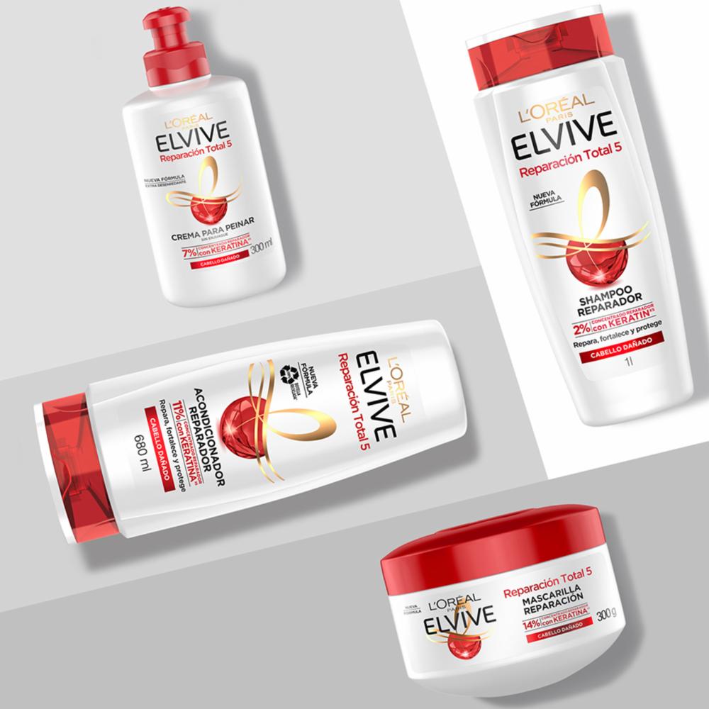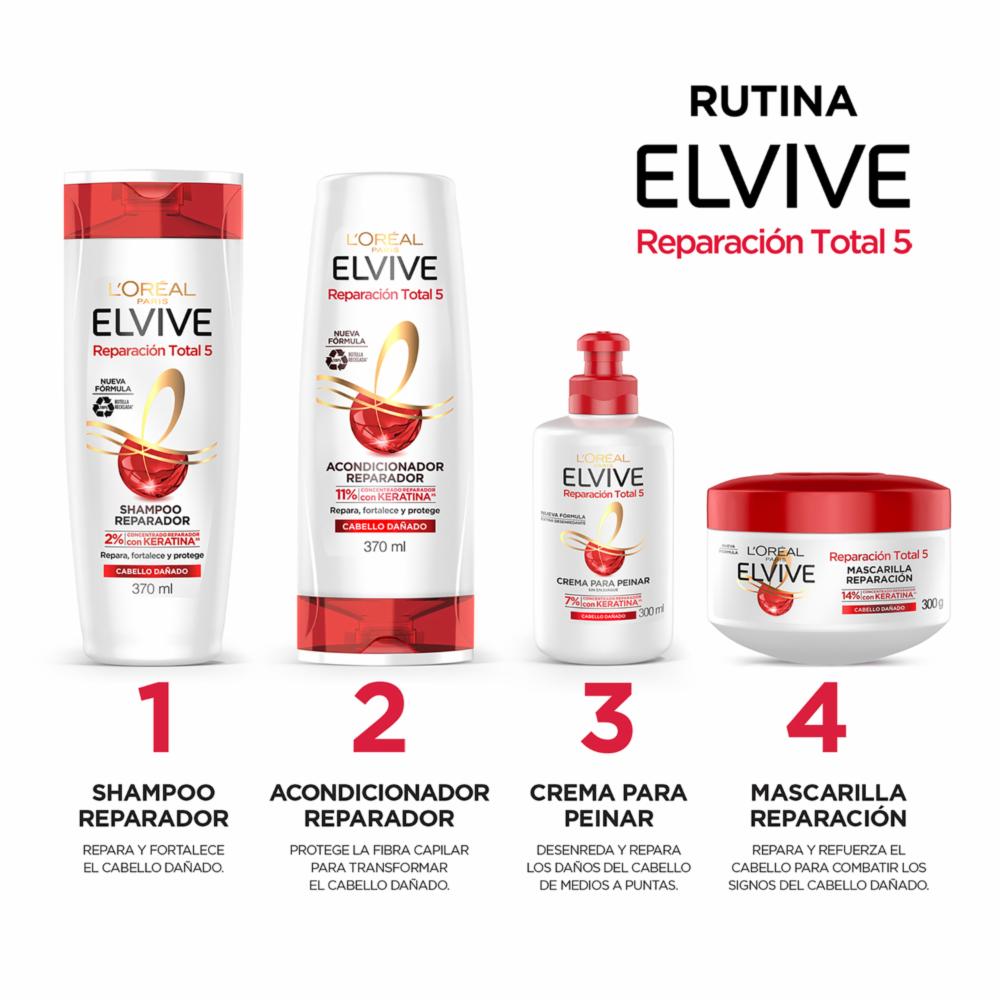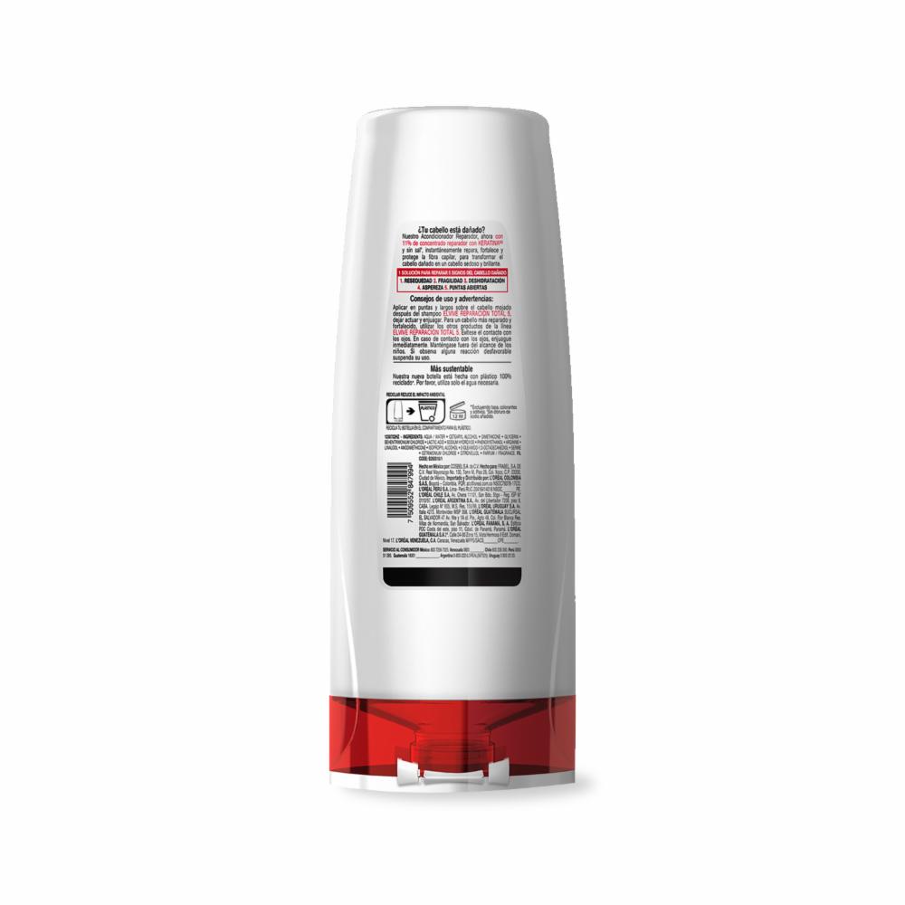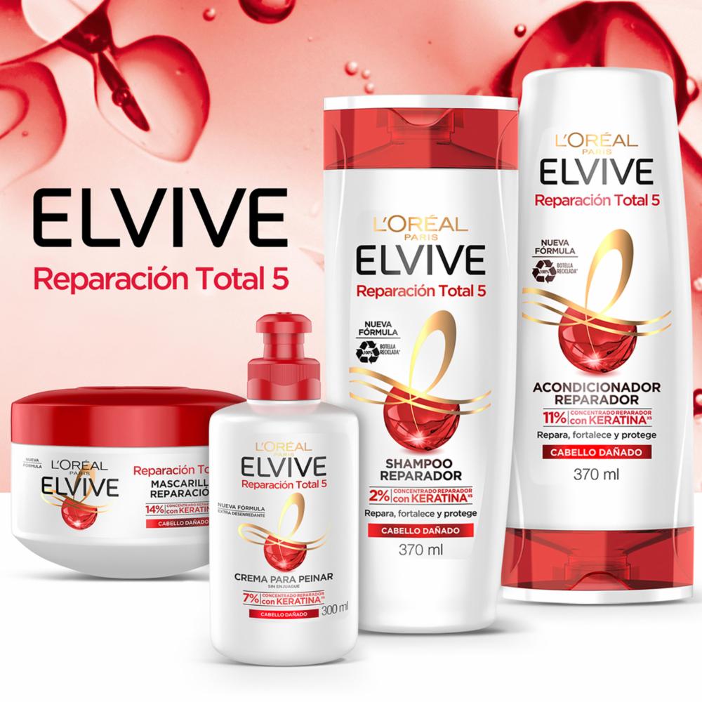 Suelta tu cabello y no permitas que nada detenga, demuestra los beneficios que el Acondicionador LOréal Paris Elvive Reparación Total 5 de 370 mililitros para cabello dañado te ofrece. -Su fórmula contiene 11% de concentrado reparador con keratina. -Reparará, fortalecerá y protegerá tu cabellera. -Prevenir los signos del cabello dañado, la resequedad, fragilidad, deshidratación, aspereza y puntas abiertas. -Fortalece la fibra capilar para transformarlo en un cabello sedoso y brillante