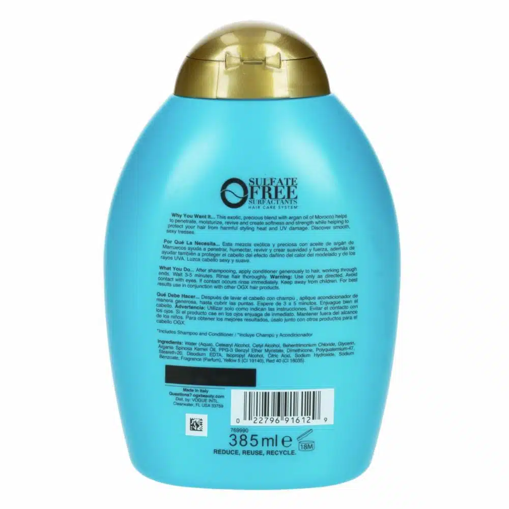 Está hecho con aceite de argán y extracto de morocco, lo que lo convierte en un acondicionador nutritivo y reparador para el cabello seco y dañado